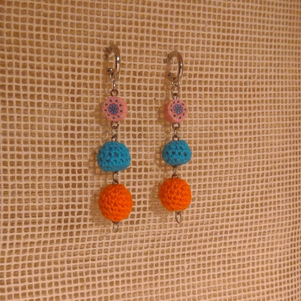 Brinco Longo Pingente Rosa de Flor/Bolas/Crochê/Azul/Laranja